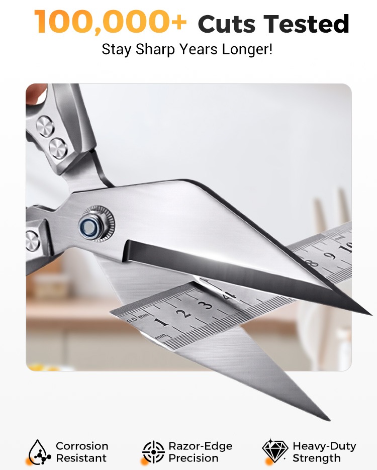 ULTRA SHARP BLADES – Crafted with high-quality blades, these shears ensure precise cutting and long-lasting performance. The corrosion-resistant material maintains sharpness, making them ideal for daily use in your kitchen.