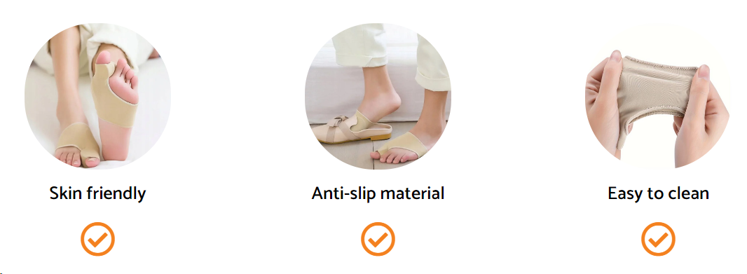 Answer: Our bunion correctors are made of high-quality elastic and breathable fabric which makes them fit most adult feet. It gathers the forefoot and has good elasticity to prevent it from falling off.