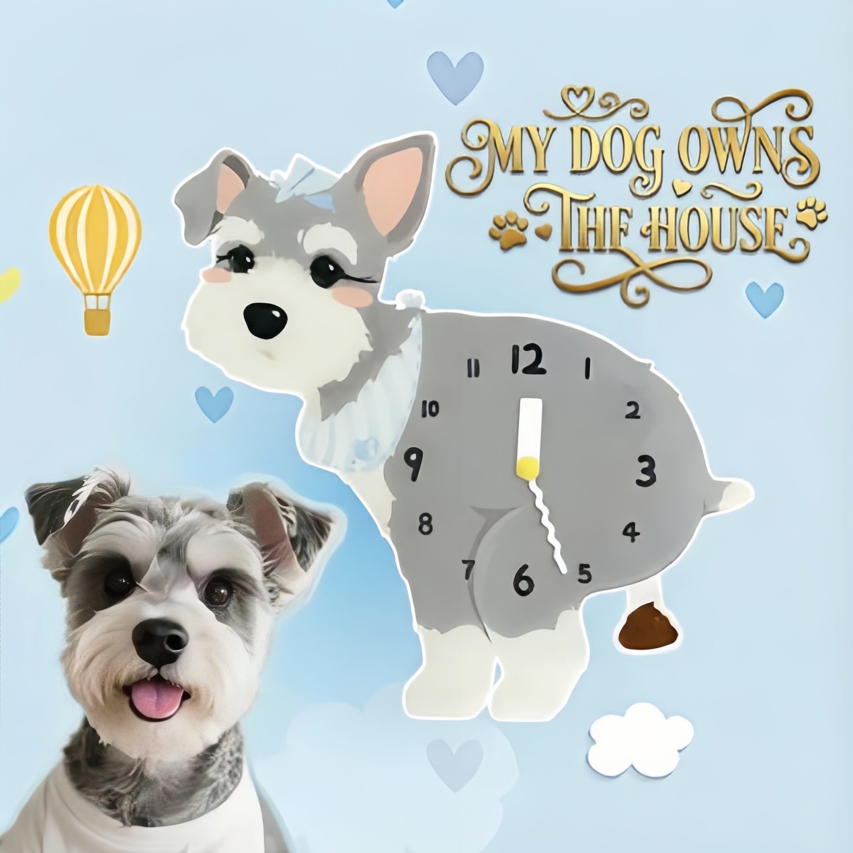 Playful Statement Piece: This clock is designed to be noticed: a blushing pupcaptured mid-act with a swinging poop pendulum thatattracts attention and sparks conversation. Use it as aninstant accent above a breakfast nook or in a playfulbathroom setup.