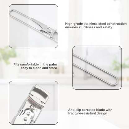 Ergonomic, non-slip handle gives you a secure hold — no more slipping lids or sore hands. Safe, smooth, and effortless.