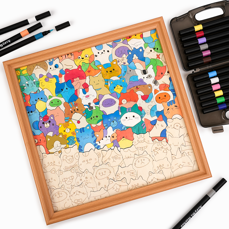 Every Wooden Coloring Puzzle is crafted with precision-cut wood and thoughtful design, letting you enjoy both the coloring process and the magic of assembling your own creation. This is more than a puzzle — it’s a personalized art experience, shaped by your style and brought to life by your hands. From the first stroke to the final piece, your finished puzzle becomes a one-of-a-kind masterpiece.
