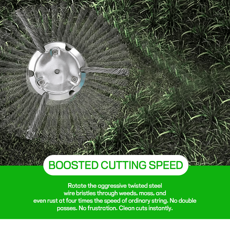 Spin through weeds, moss, and even rust with aggressive twisted wire bristles that deliver 4X the speed of regular string heads. No double passes. No frustration. Just clean cuts, instantly.