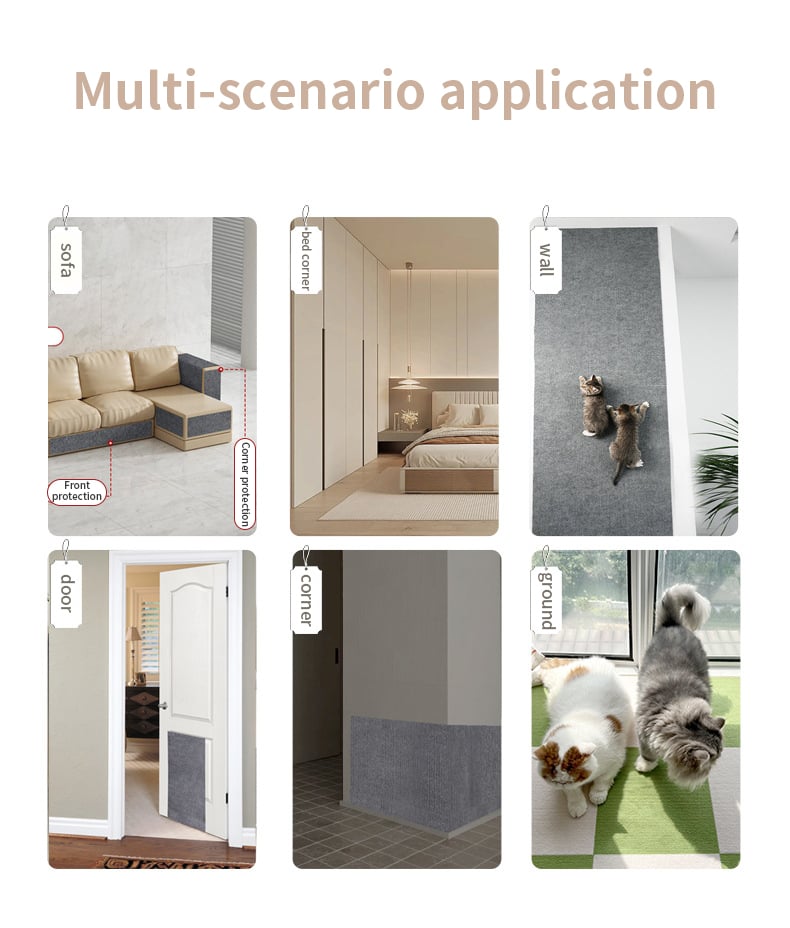 Cat furniture protector: Cat are naturally drawn to rough-textured surfaces for scratching, the cat scratch mat surfaces meet cats instinctual scratching needs, which is scratch-resistant and does not shed easily, can draw your cat's attention away from your valuable furniture, not only keeping your cat happy but also protecting your furniture from cat scratching.