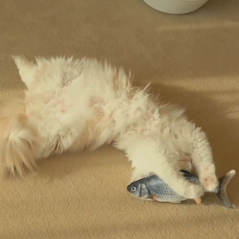 This fish cat toy flops or wags automatically, you can charge it with a USB cable.
