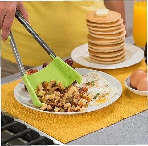 Cooking and serving has never been easier! Trying to manage your kitchen utensils and handling food while cooking can be a kitchen nightmare. With our new 2-in-1 handy utensil, Simply Flip, mealtimes become a dream! You get all of the benefits of tongs in the form of a spatula. You can flip, grip, turn, and serve food at ease with this must-have device.