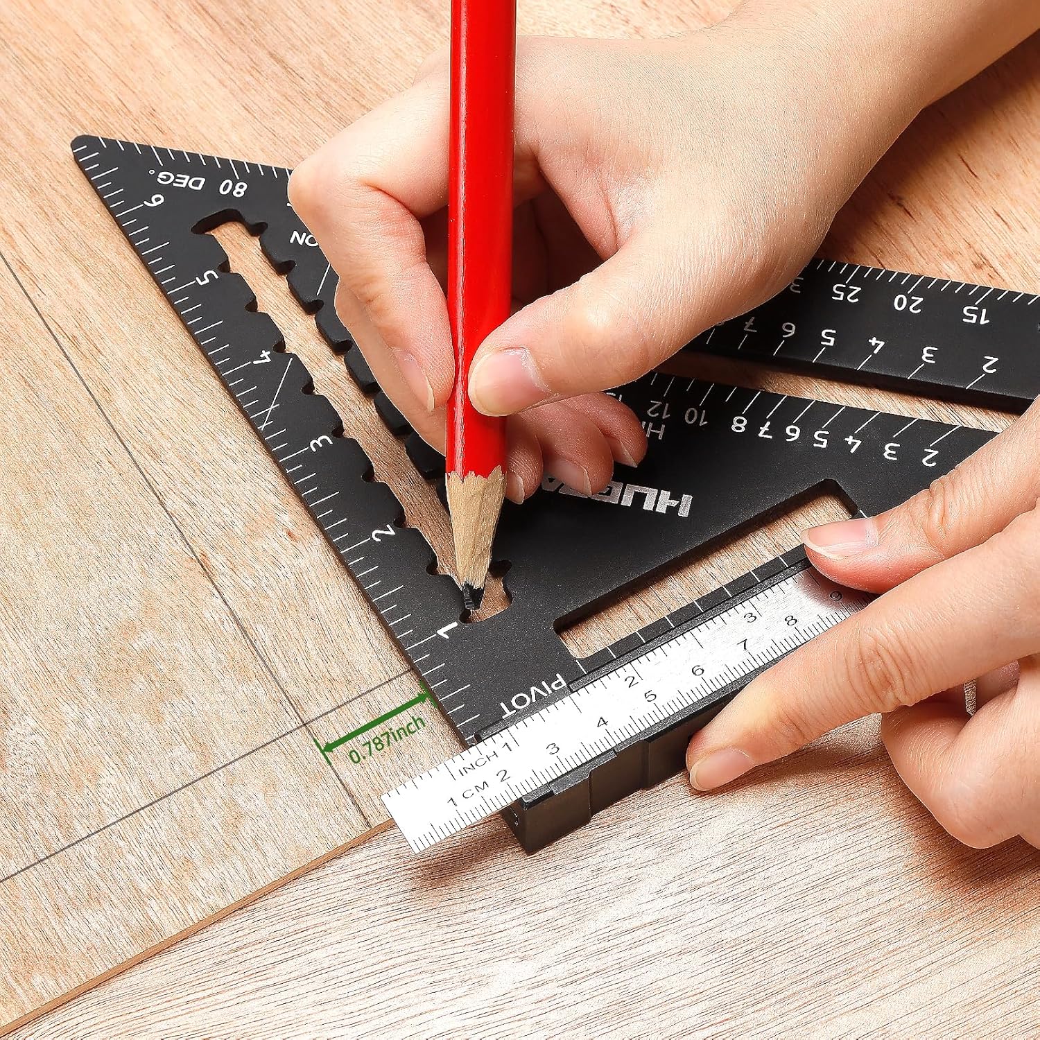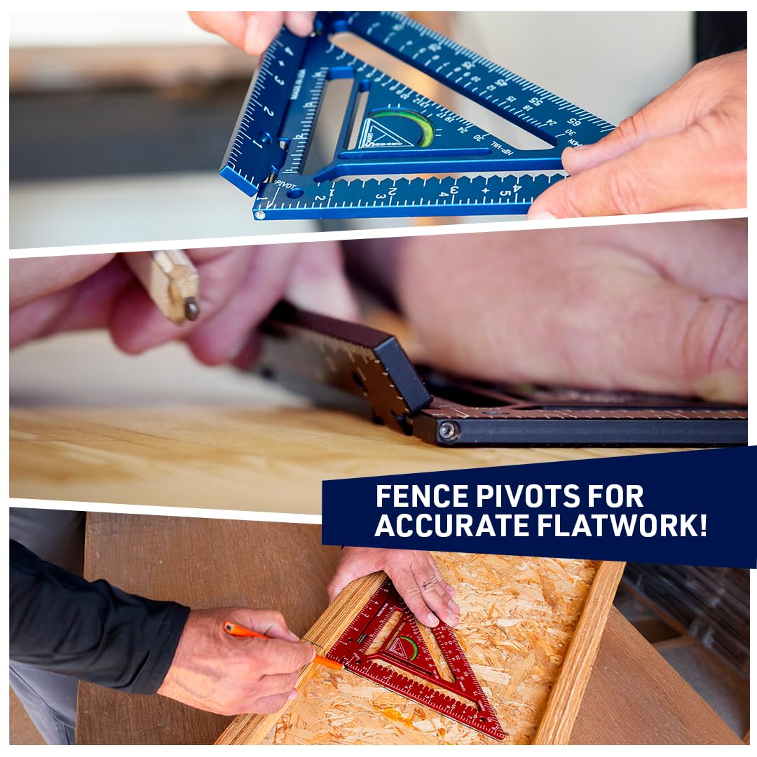 Use our exclusive jig block and thumb screw to turn the speed square into a jig! Set the jig to any mark and lock in place. For reliable repetitive markings to save you time and money on the job site. Worth the price of admission alone