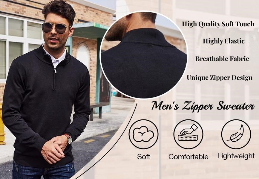 The zipper sweater is made of soft knitted material for warmth and comfort. Its stand collar fits the neck curve better, keeping you warm. The zipper design allows foor easy wear and adaptation to cold weather.