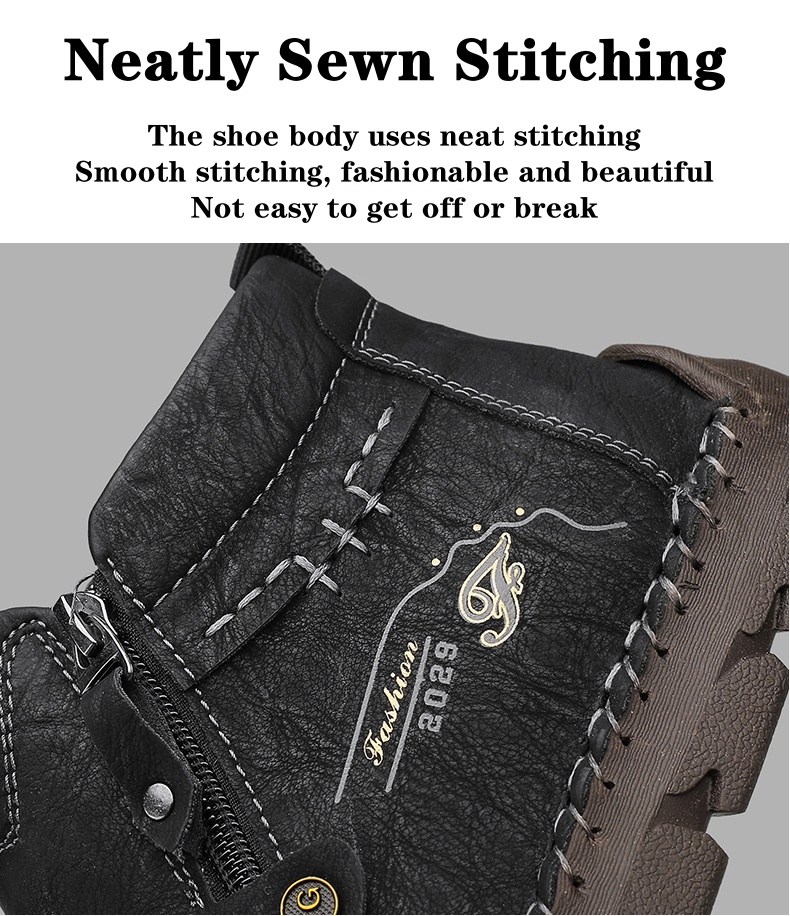 (⏰Last Day 70% OFF🔥)Men's Top-Quality Motorcycle Boots Hand-Stitched Genuine Leather Boots-Wide Toe, Waterproof, Anti-Slip, Anti-Sprain,Suitable for Work, Driving, Hiking