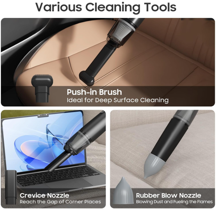 FLEXIBILITY AND CONVENIENCE - Designed for quick and easy use, our portable electric vacuum cleaner allows you to clean impromptu messes without the need for traditional bulky vacuum cleaners. Its lightweight and compact design make it convenient to carry from room to room or even take with you on the go.