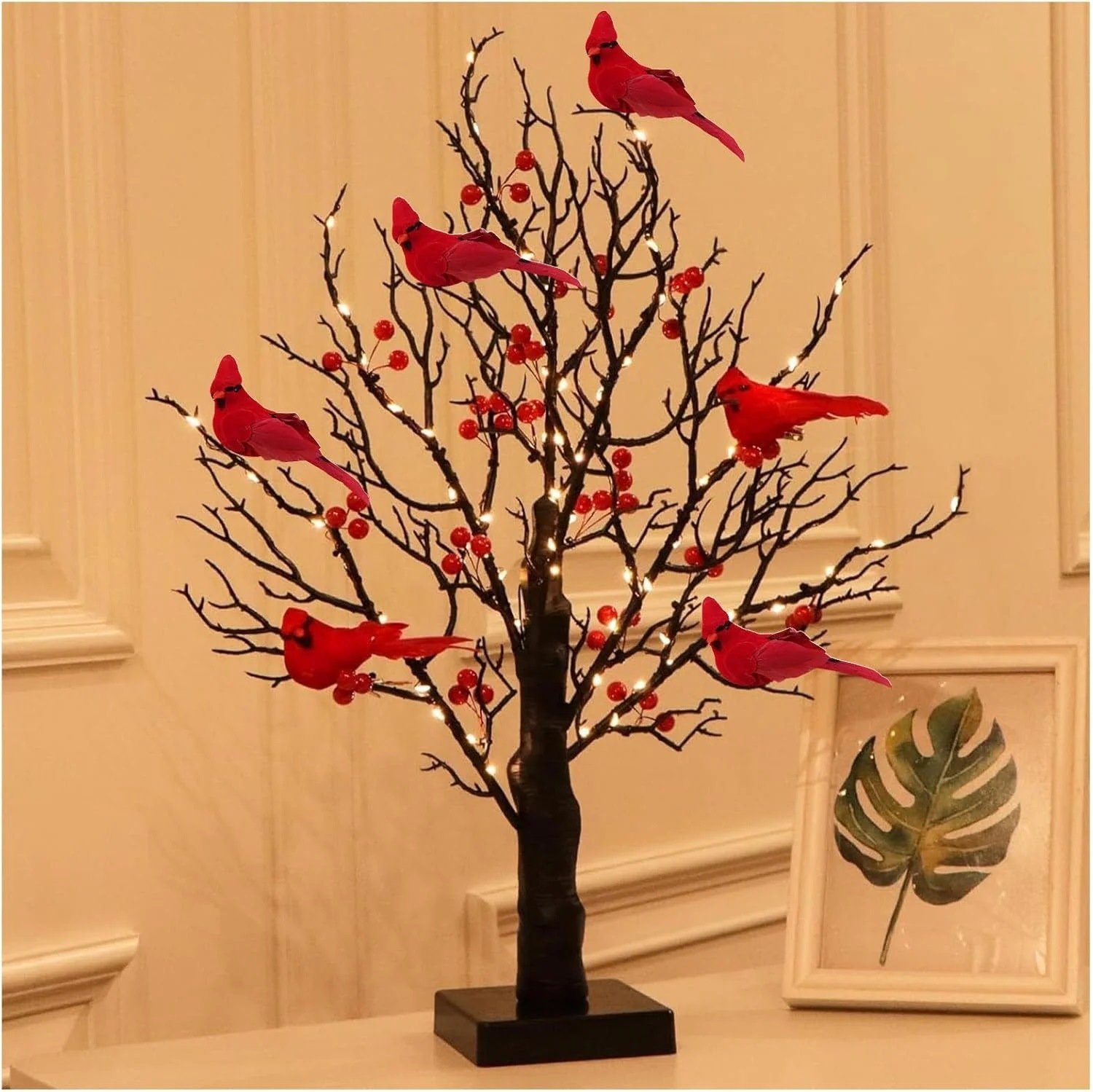 Turn your home into a cozy holiday retreat! The built-in LED warm lights shine softly through the branches, highlighting the vintage-style cardinals and red berries. It instantly brings warmth, nostalgia, and festive cheer to any room, making your space feel welcoming for family and guests.